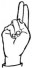 На ћирилици написано ЛАВ ГОДОЧЕВИЋ састоји се из 12 слова [?]. Исписано ћириличном једноручном азбуком за глувонеме: